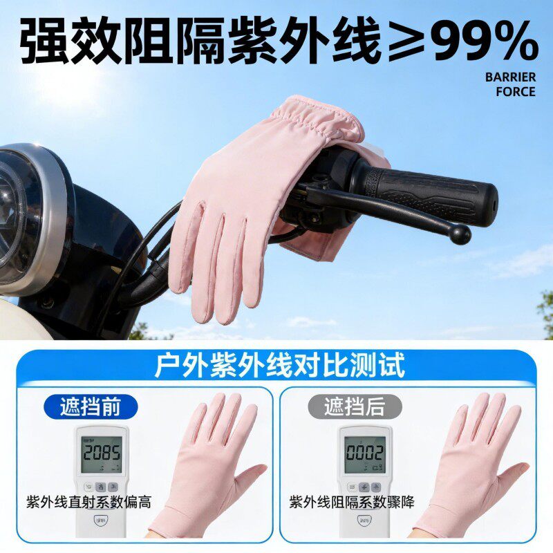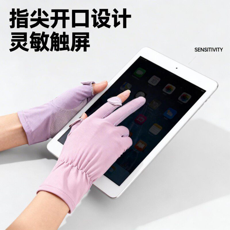 防晒手套女防紫外线冰丝露二指夏季户外电动车骑行开车手套女薄款