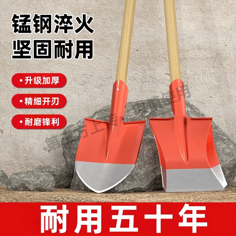 铁锹锰钢挖土家用铁铲子大铁锨头农用工具大全工地方平头洋铲老式