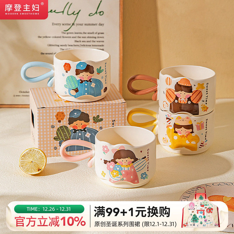 摩登主妇马克杯家用喝水杯陶瓷杯高颜值早餐杯情侣咖啡杯叠叠杯子