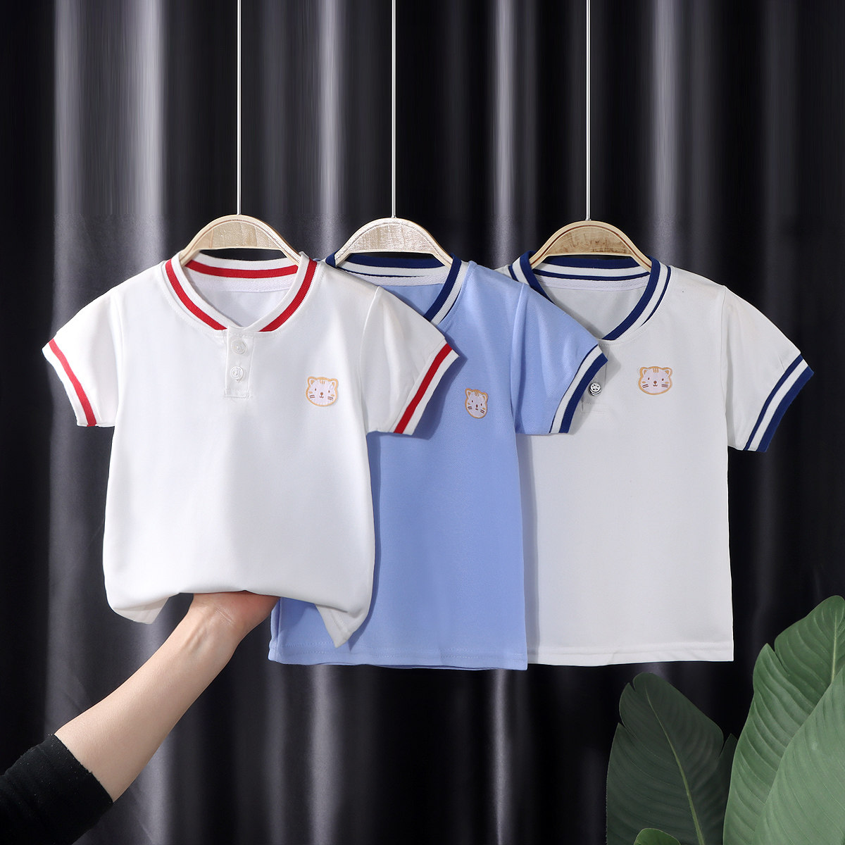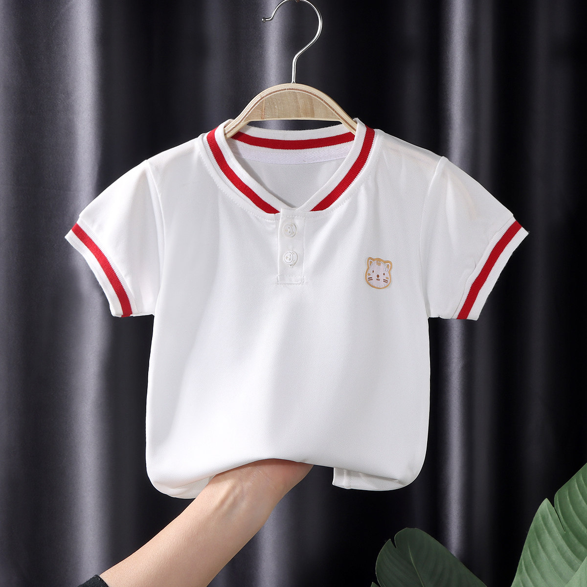 婧麒男童夏装T恤2025新款儿童洋气百搭短袖POLO衫男宝宝童装上衣