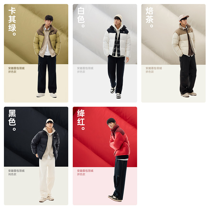 【王一博同款】安踏面包羽绒保暖防泼水短款鸭绒羽绒服运动外套