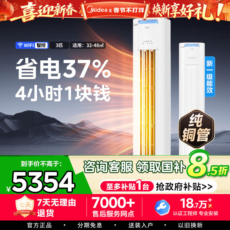 【政府补贴】美的立式空调一级变频冷暖2P3匹家用柜机酷省电官方