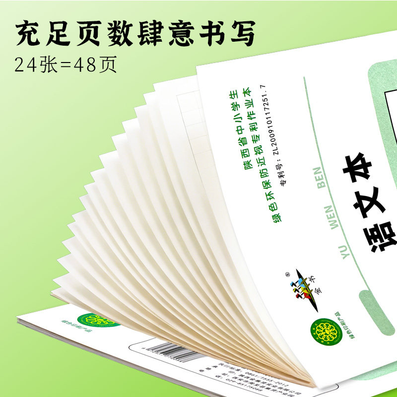 金书小学生作业本子绿色护眼纸作业本专利小学生1-6年级学校专用语文本数学本生字本英语本作文本拼音本