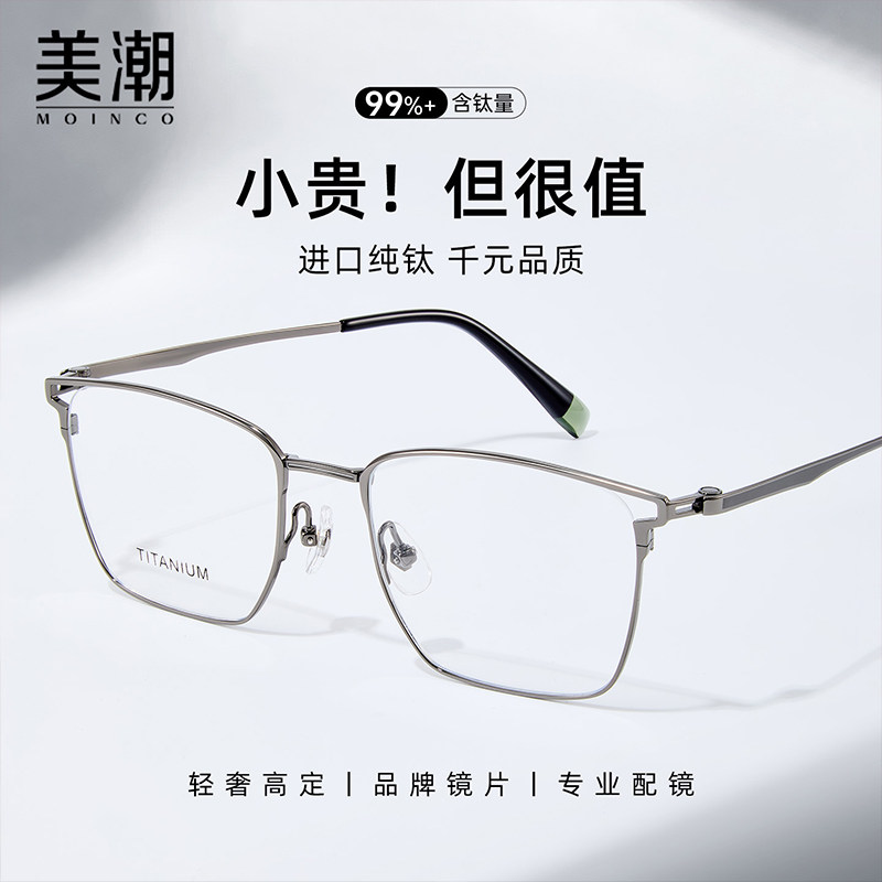 超轻纯钛眼镜框男款近视可配度数防蓝光抗辐射镂空高级感方框镜架