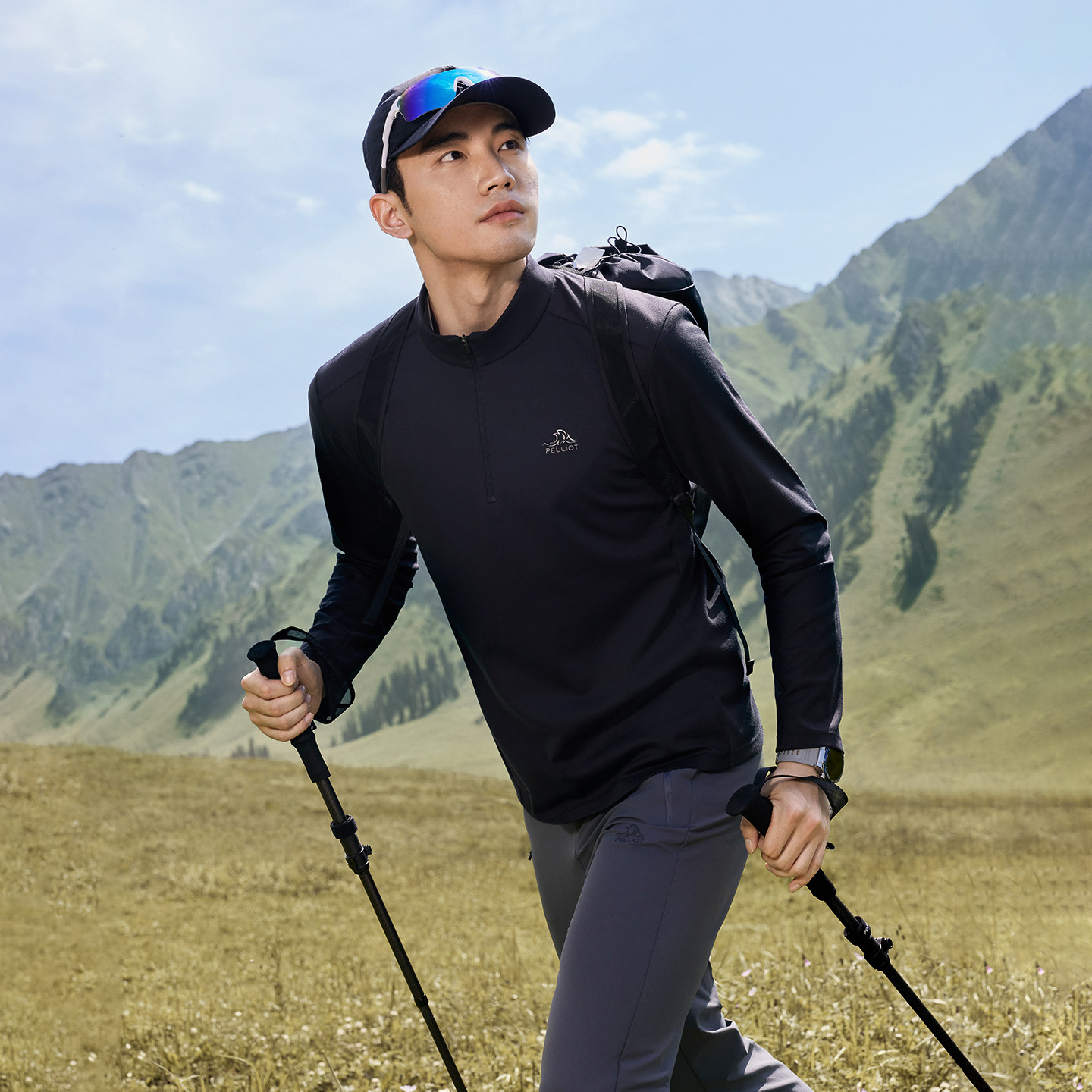 伯希和户外速干T恤男秋冬新款运动长袖休闲上衣翻领POLO打底衫
