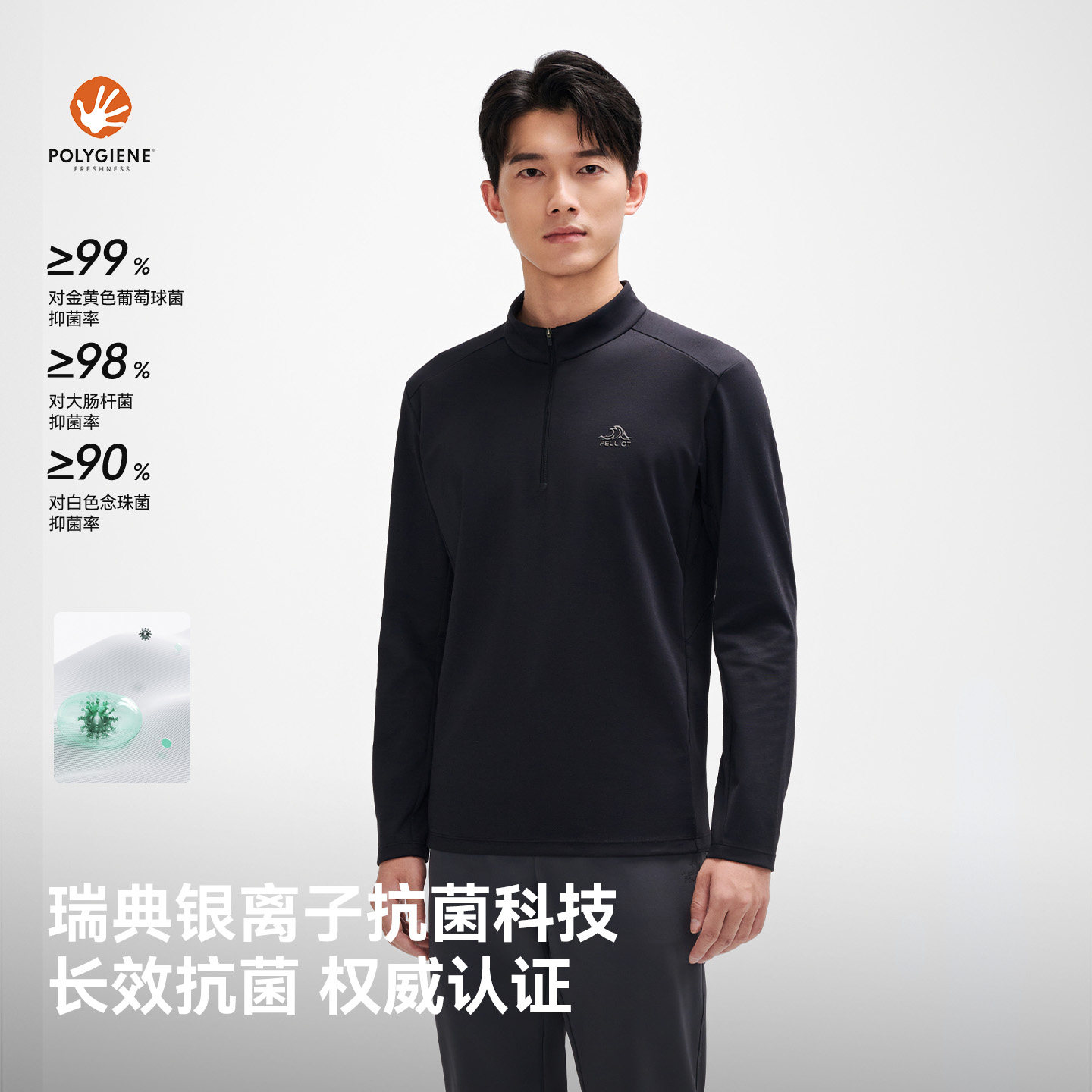 伯希和户外长袖T恤男冬季新款Polygiene立领运动长袖登山打底衫女