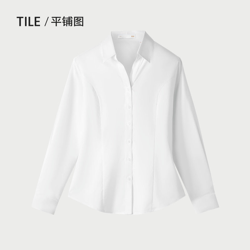 HLA/海澜之家商务长袖女士正装微弹白衬衫秋新款通勤翻领直筒衬衣