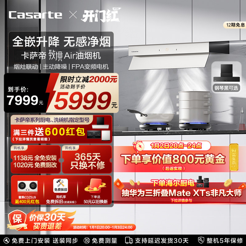 卡萨帝致境抽油烟机家用厨房变频静音大吸力隐藏式升降白松露Q5