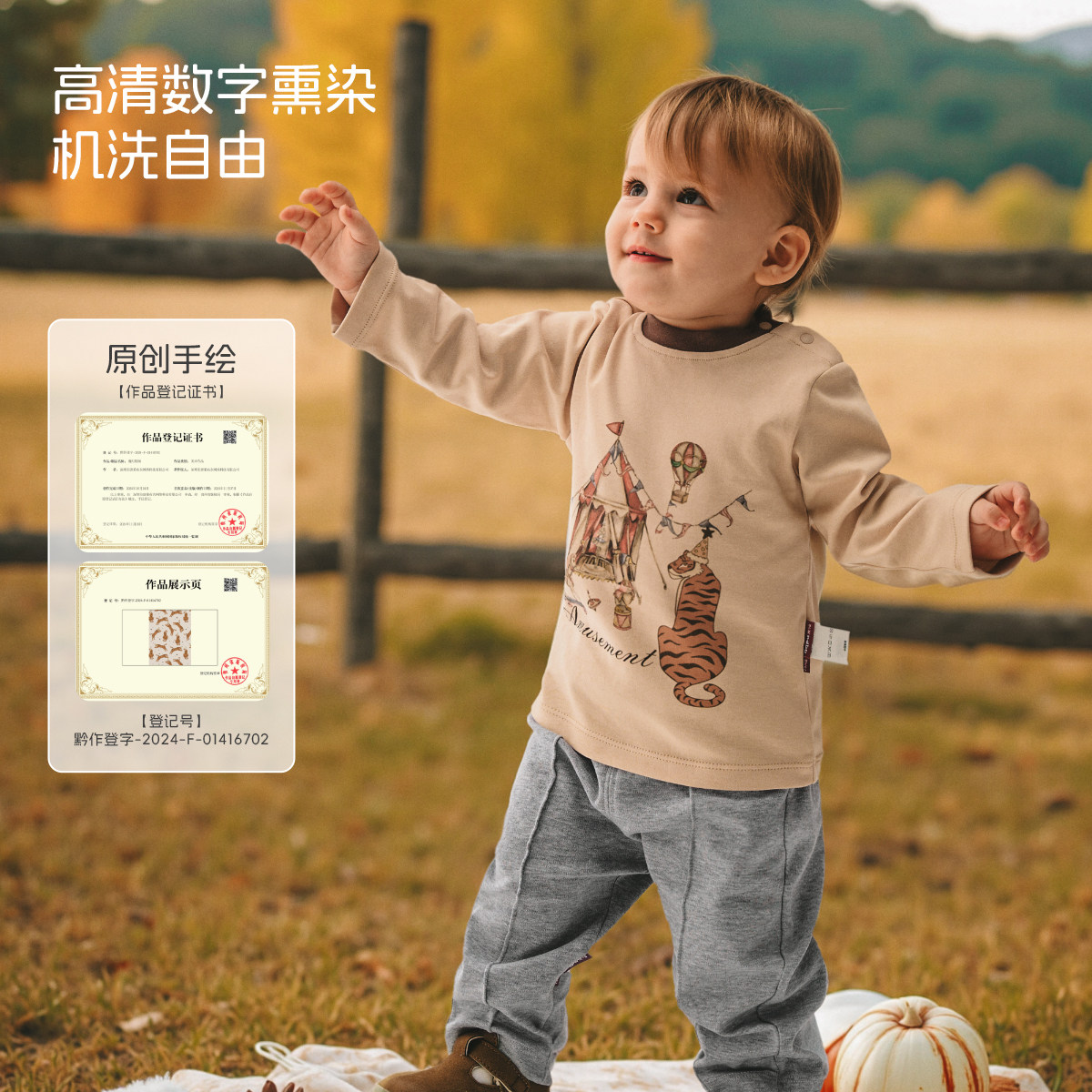 aqpa爱帕儿童长袖T恤秋季纯棉新款宝宝上衣婴幼儿衣服动物可爱萌