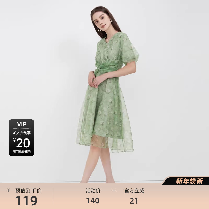 V领连衣裙 清新碎花 交叉拼接