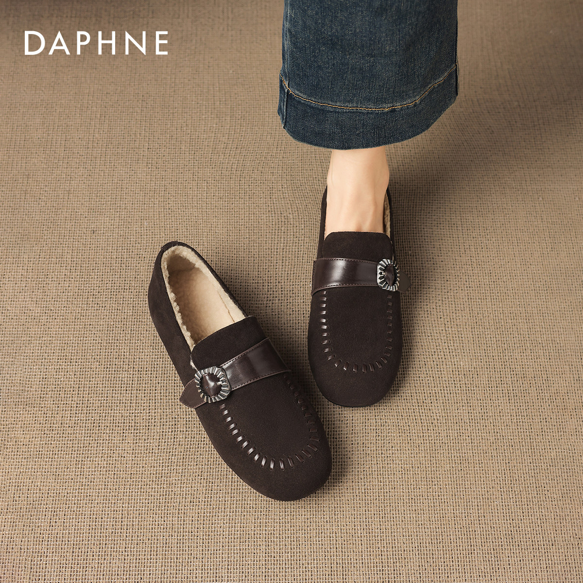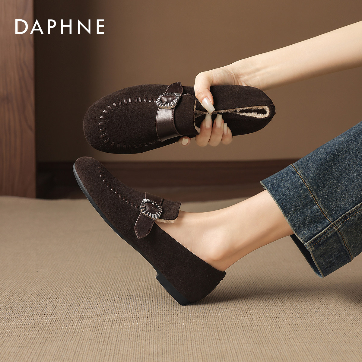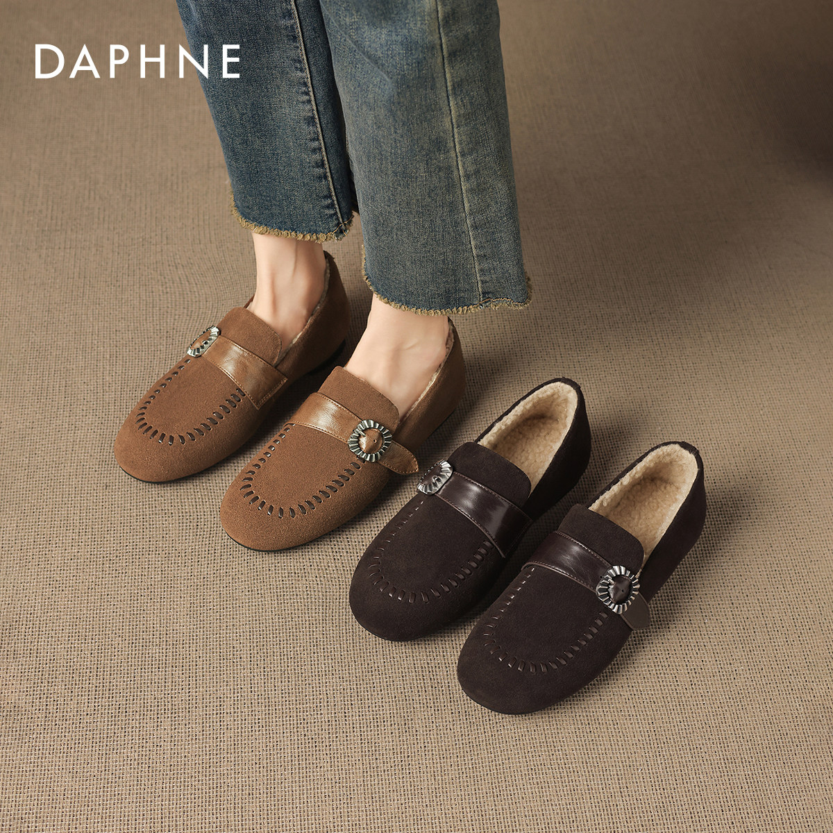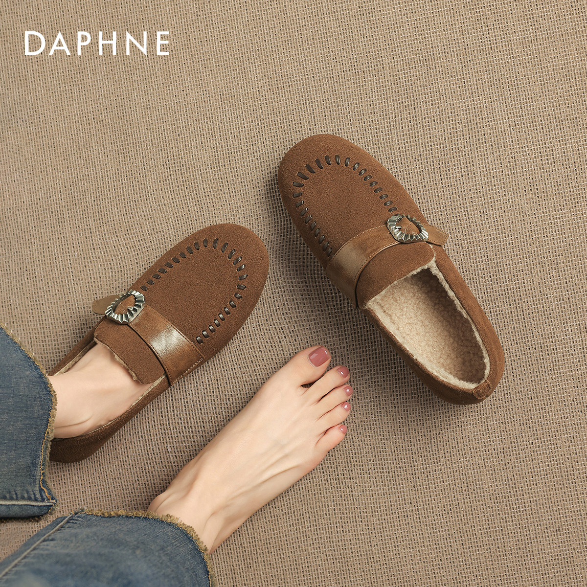 达芙妮加绒乐福鞋女2026新款春季一脚蹬软底豆豆勃肯单鞋保暖棉鞋