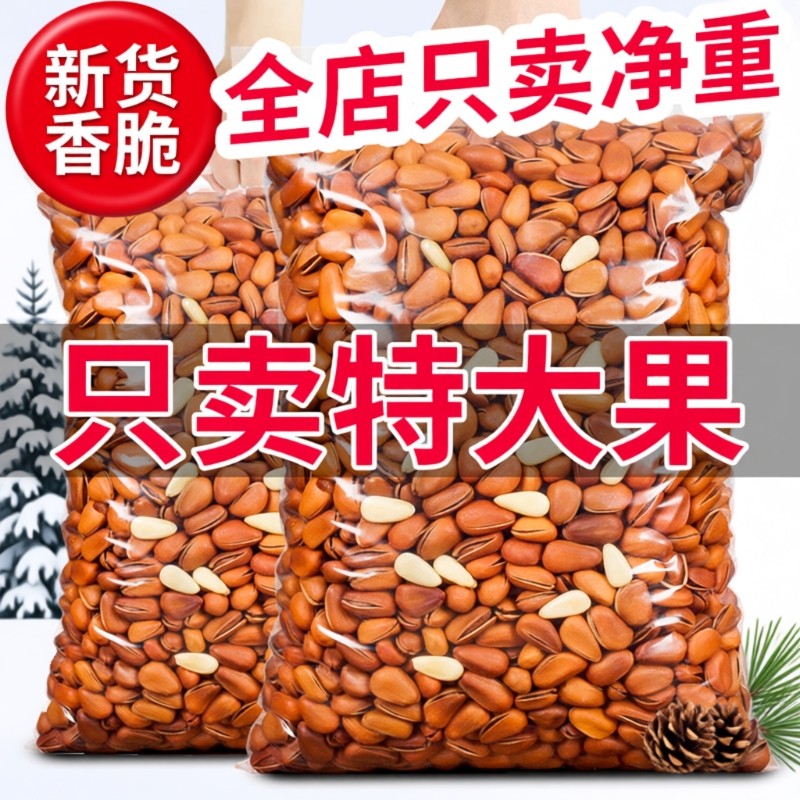 新货开口松子东北手剥原味坚果松树屯特大颗粒大红松子新松子500g