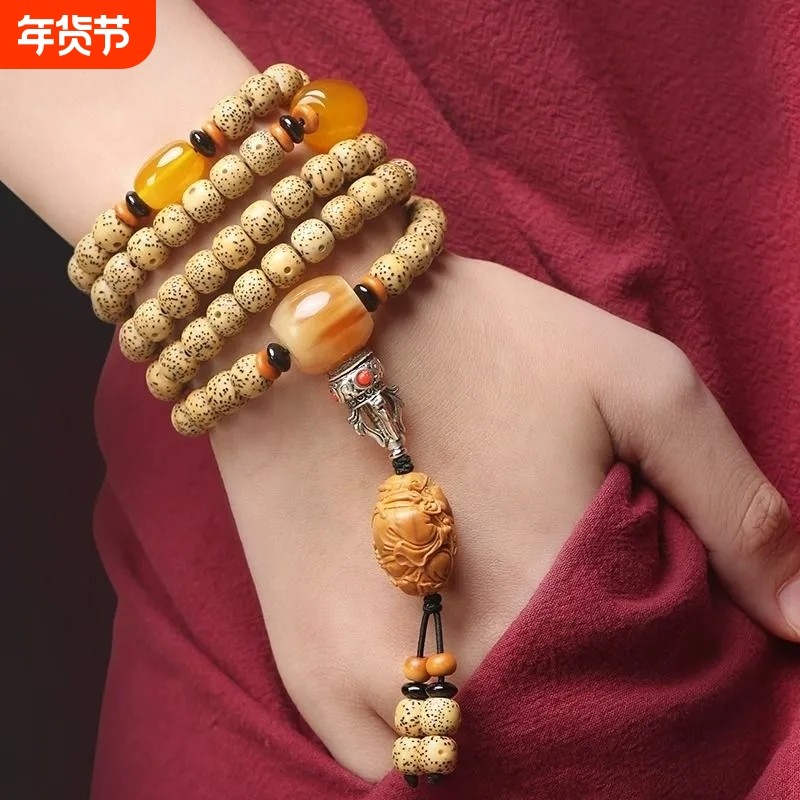 海南老星月菩提子手串108颗手链女佛珠文玩项链金刚原籽打磨包浆