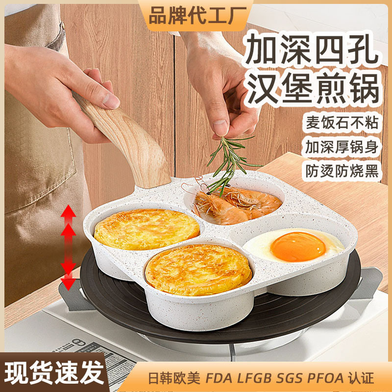 家用麦饭石四孔煎蛋锅厨房平底锅不粘锅早餐鸡蛋汉堡小煎锅牛排锅