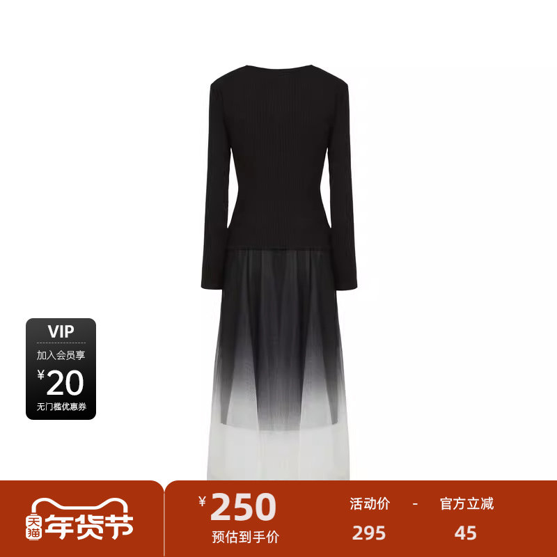 sdeer圣迪奥女装秋圆领交叉收腰网纱针织吊带裙套装S241Z1410