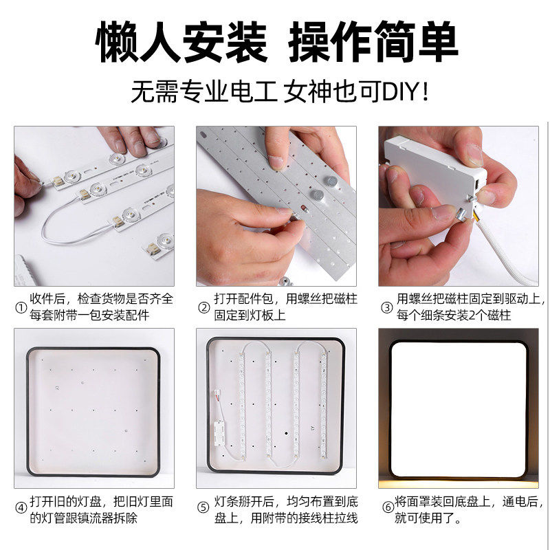 客厅灯led全光谱吸顶灯替换灯芯灯条长条灯卧室灯客厅灯板超亮