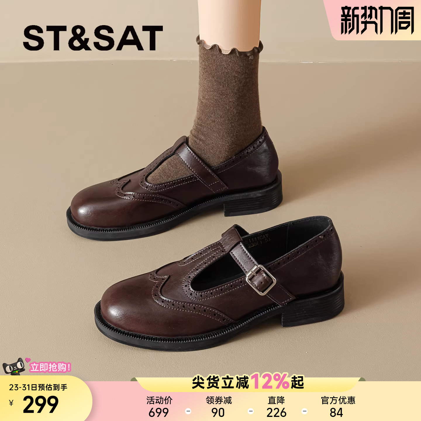 星期六英伦风乐福鞋女款2026春季新款复古布洛克厚底玛丽珍小皮鞋