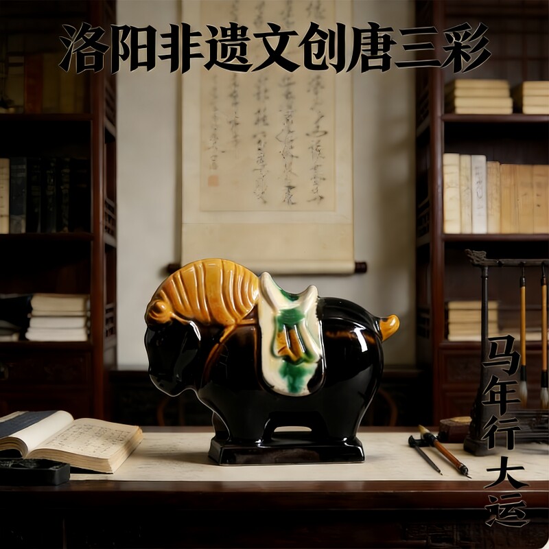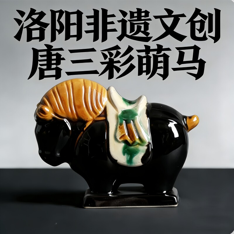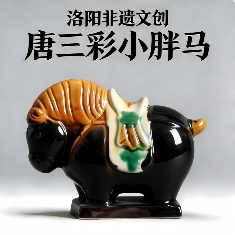 洛阳唐三彩陶瓷佛系胖马文创艺术品手办小胖马旅游伴手桌面装饰品