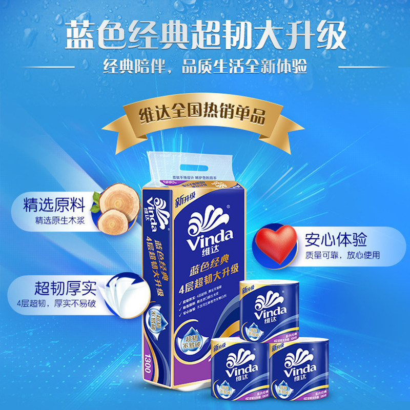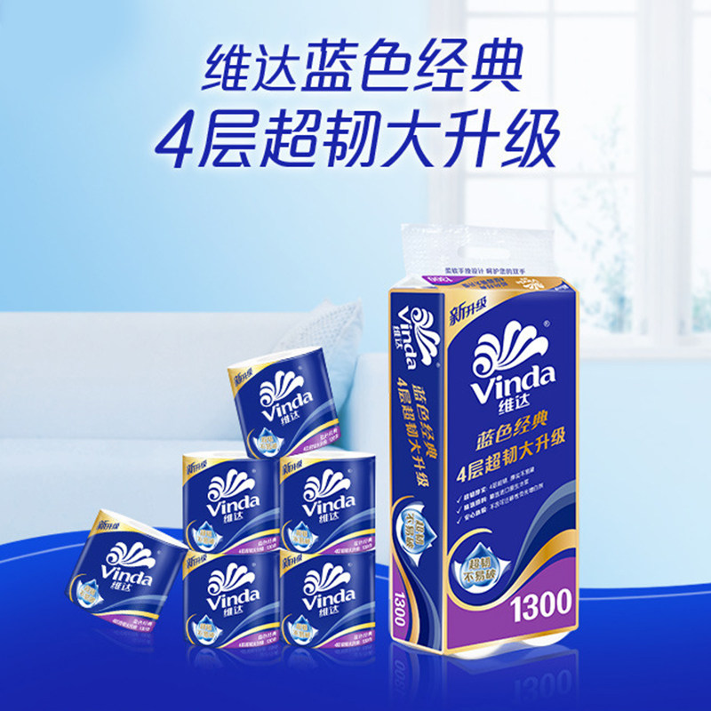【孙颖莎推荐】维达卷纸蓝色经典卫生纸巾四层家庭装有芯卷纸厕所