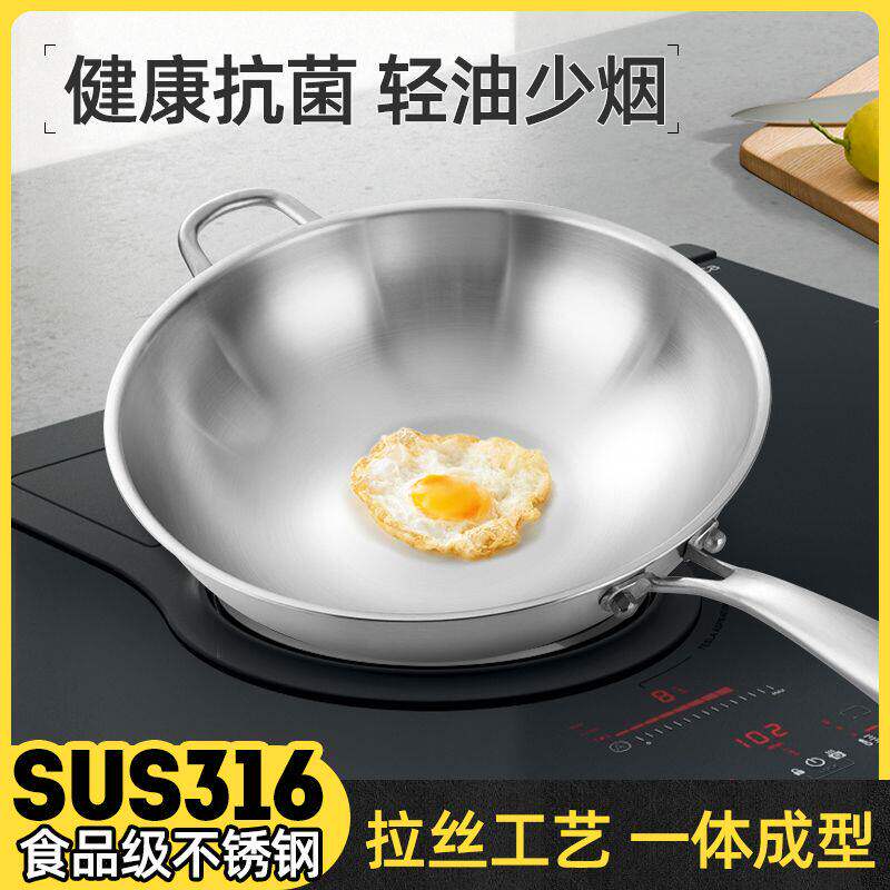 苏泊尔德国抗菌316不锈钢家用炒菜锅平底锅加厚食品级炒锅电磁炉