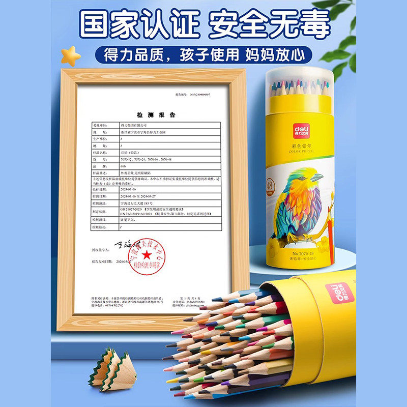 得力文具7012六角杆彩色铅笔儿童绘画36色铅笔桶装彩笔涂鸦彩铅