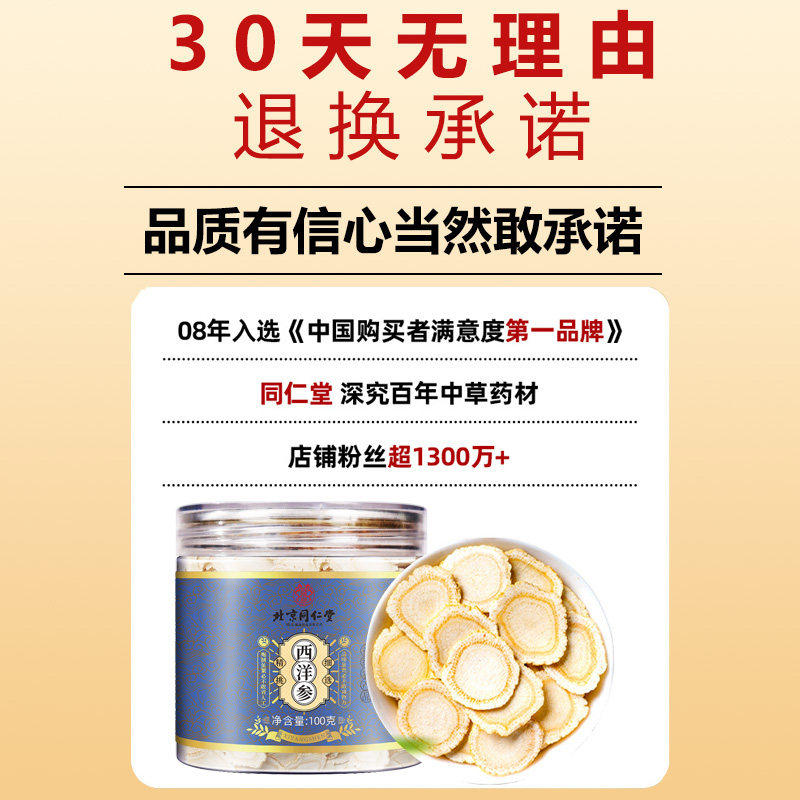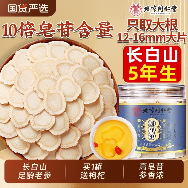 北京同仁堂西洋参片官方旗舰店正品特级人参花旗参切片泡水长白山