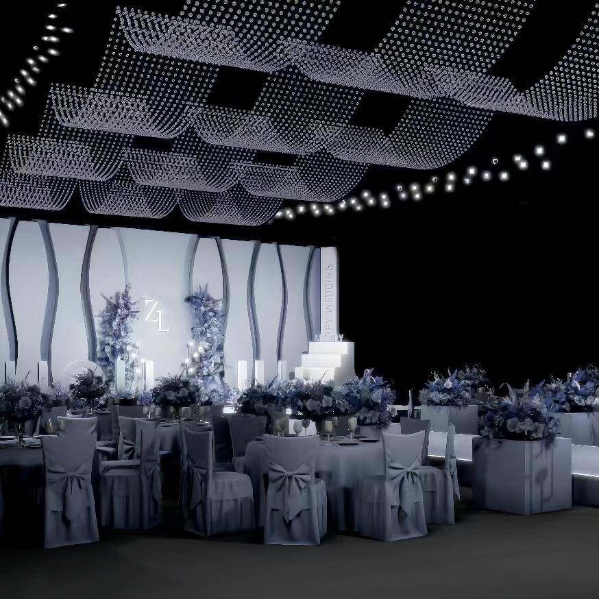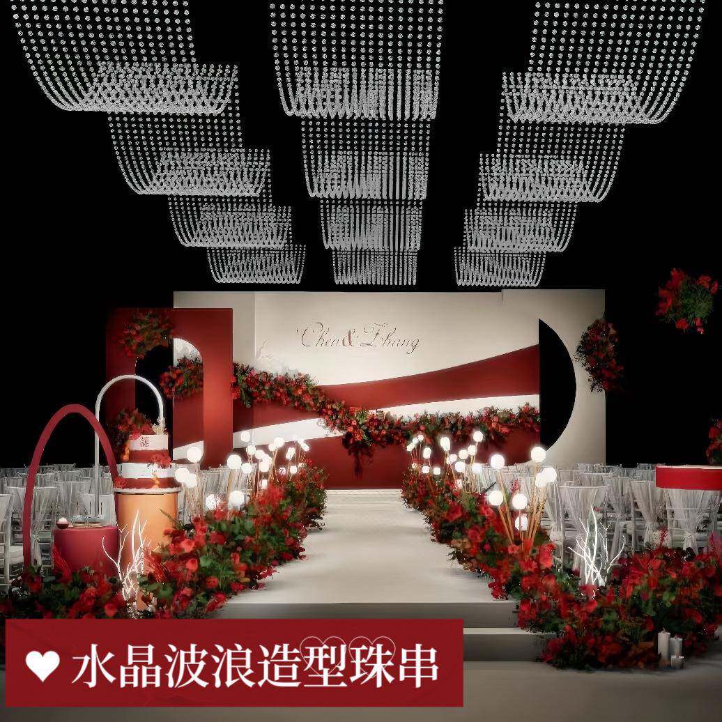 新款婚庆道具水晶波浪珠串珠帘吊顶装饰珠链婚礼堂菠萝珠帘子成品