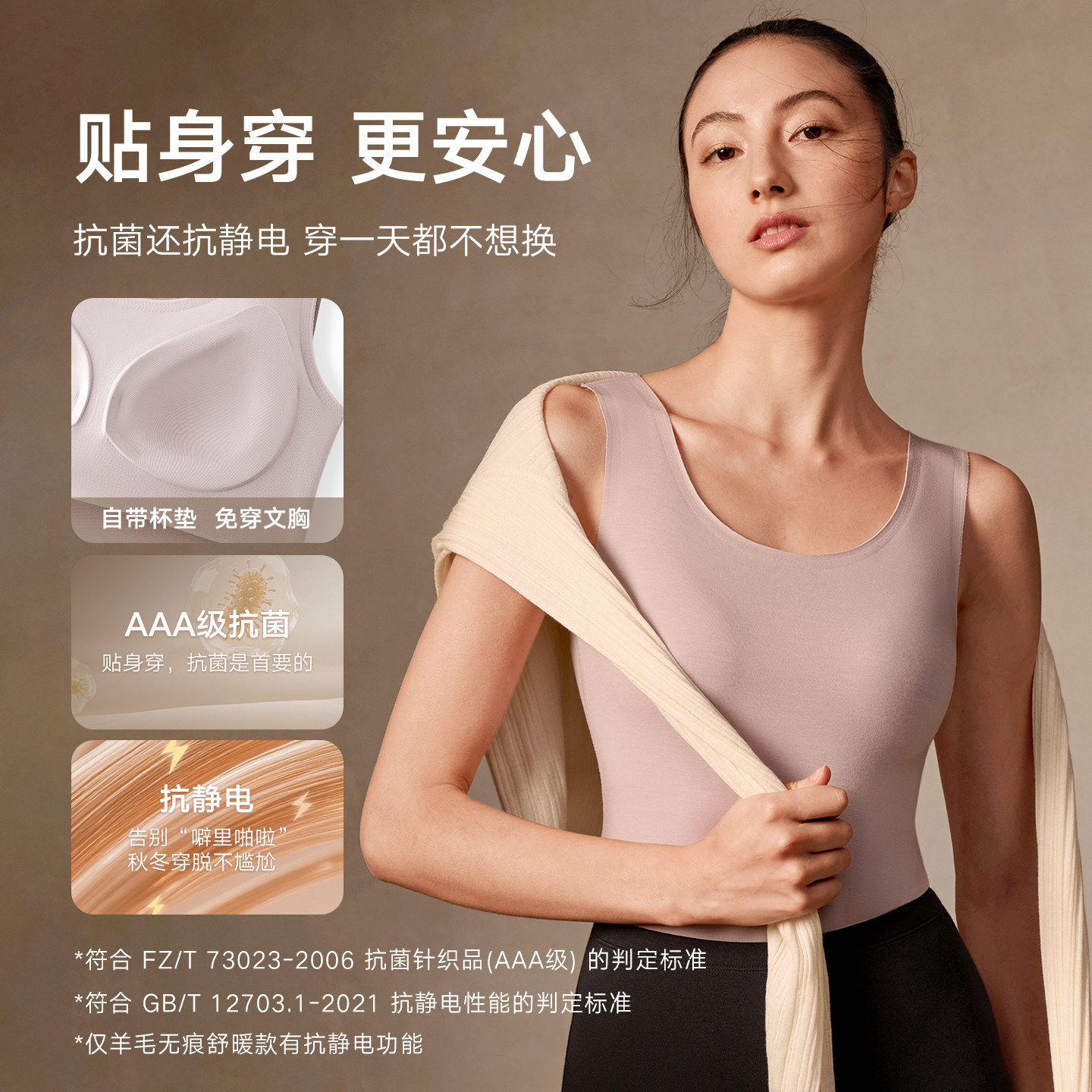 柔性风暴美利奴羊毛背心带胸垫一体式秋冬保暖背心女2025新款内搭