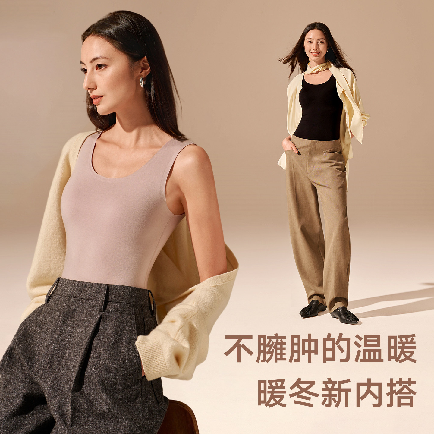 ubras保暖背心U领肌底衣女舒适无痕无袖内搭打底含羊毛可外穿上衣