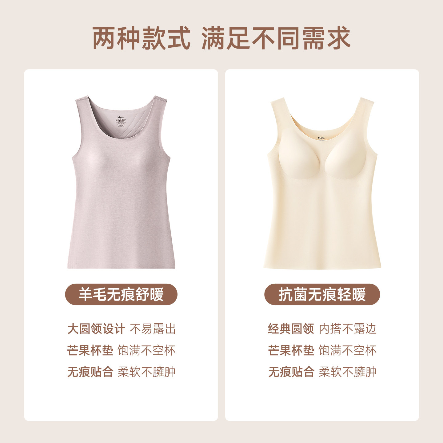 舒暖|曼妮芬带胸垫羊毛无痕保暖背心女打底免穿文胸罩杯一体式