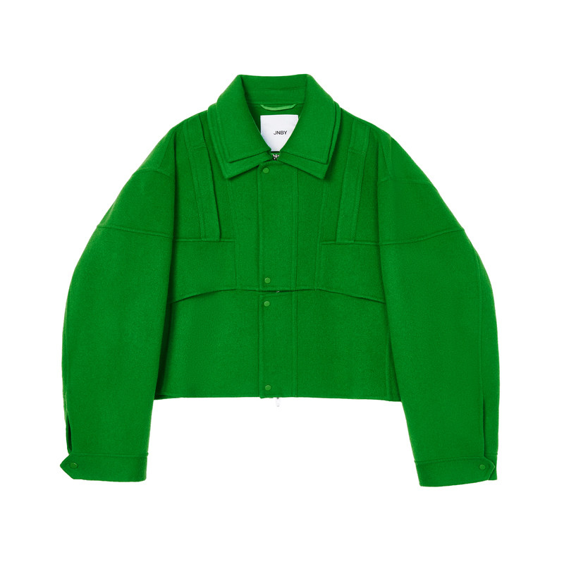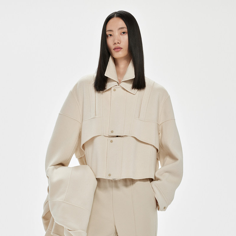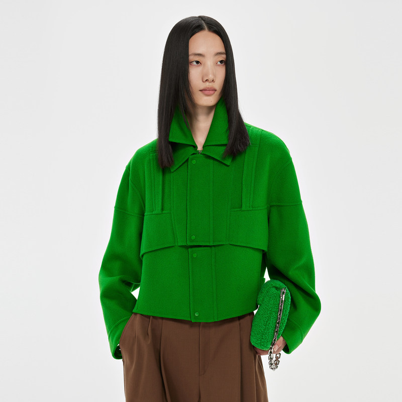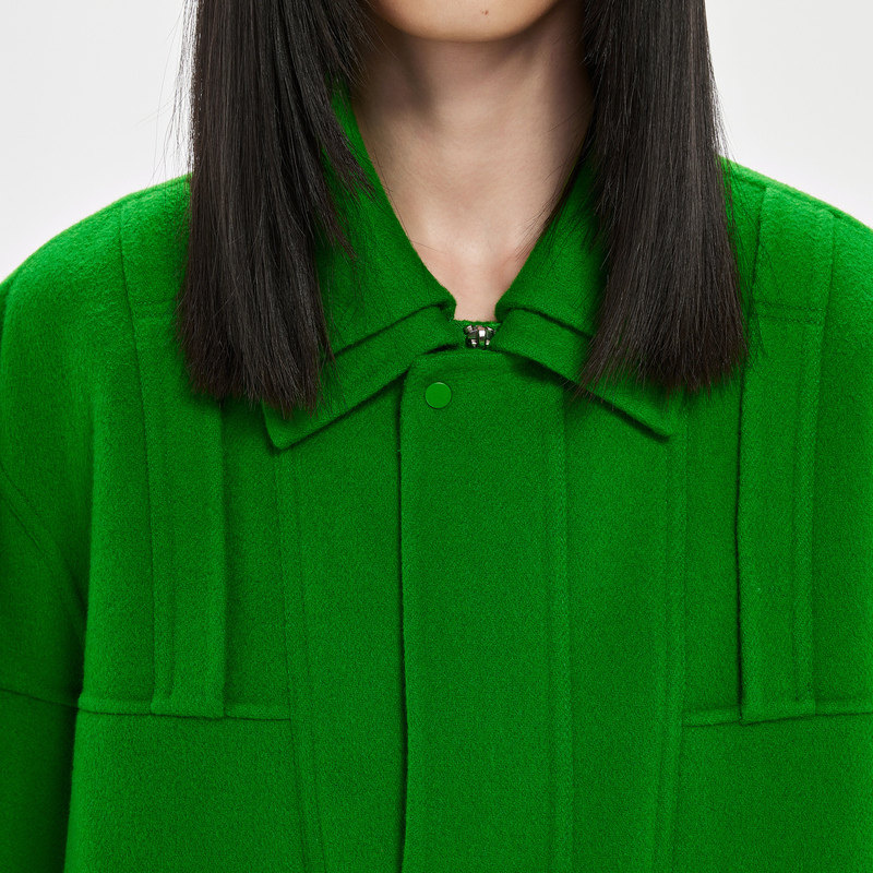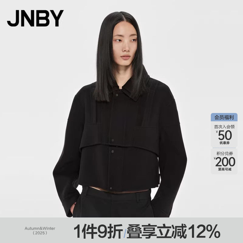 JNBY/江南布衣折扣秋冬时尚夹克柔软毛呢宽松拼接翻领短款通勤女
