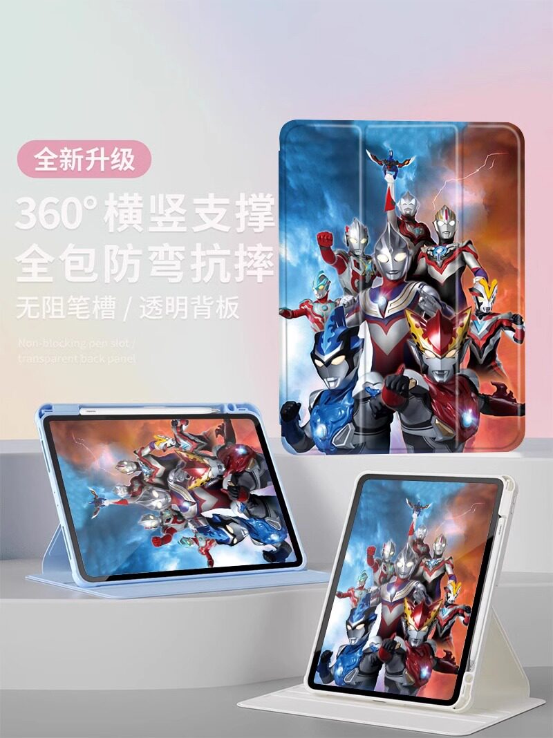 【720°旋转亚克力】适用苹果ipad9保护套air5平板壳10.9寸2021款8笔槽pro11奥特曼超人第八九代mini6防弯3/4