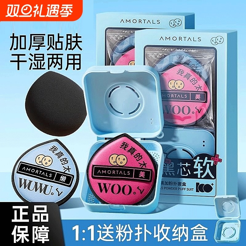 尔木萄黑加粉扑粉底液专用气垫粉饼散粉扑女官方旗舰店葡女收纳盒