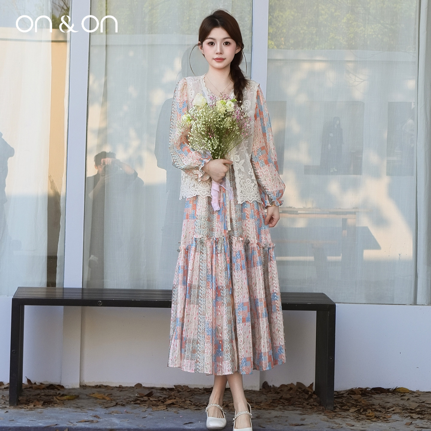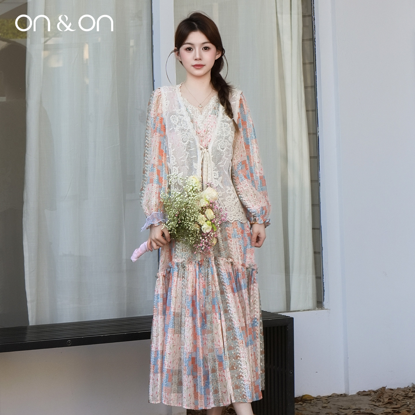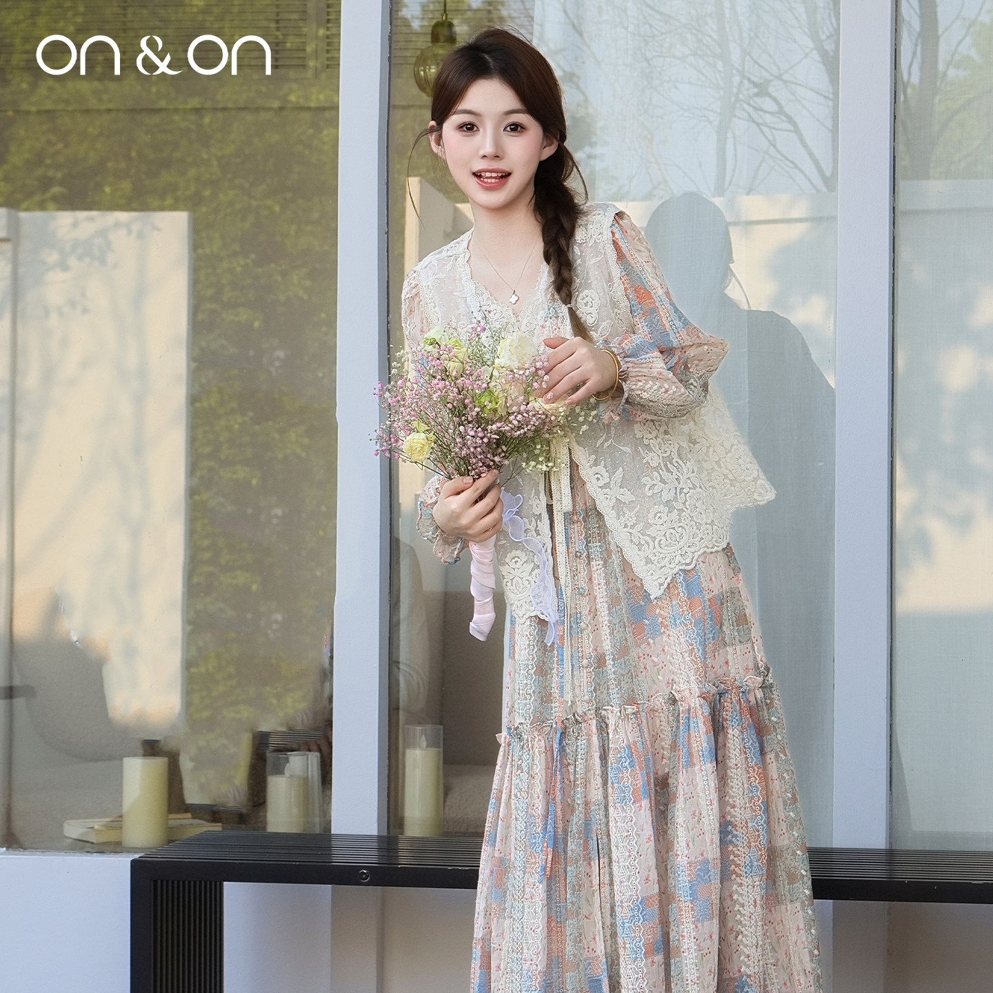 ON&ON/安乃安2026春季新款法式百搭蕾丝刺绣系带波西米亚风马甲