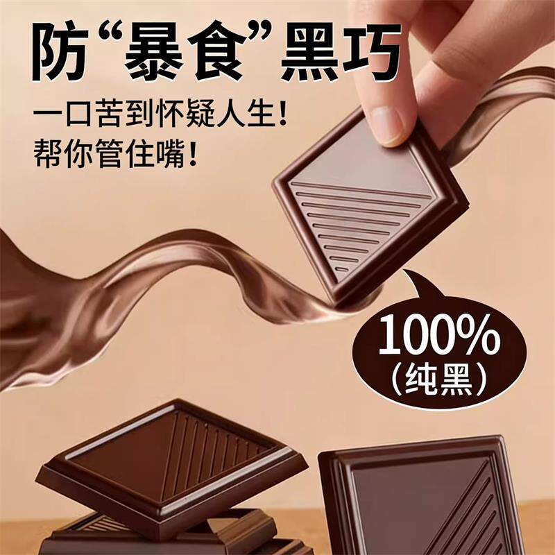 纯正100%黑巧克力无蔗糖纯可可脂0糖0脂饱腹代餐原装官方旗舰店