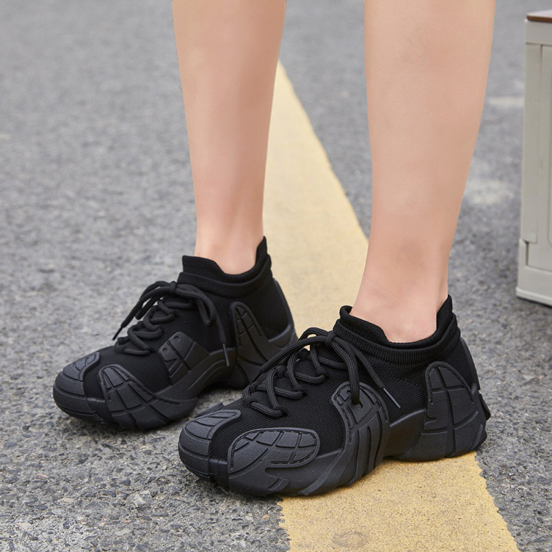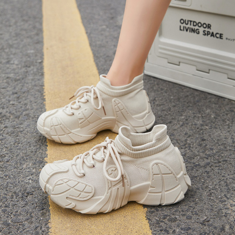 丑萌袜子鞋女2025秋季新款飞织网面透气运动鞋厚底防滑登山休闲鞋