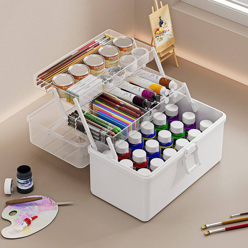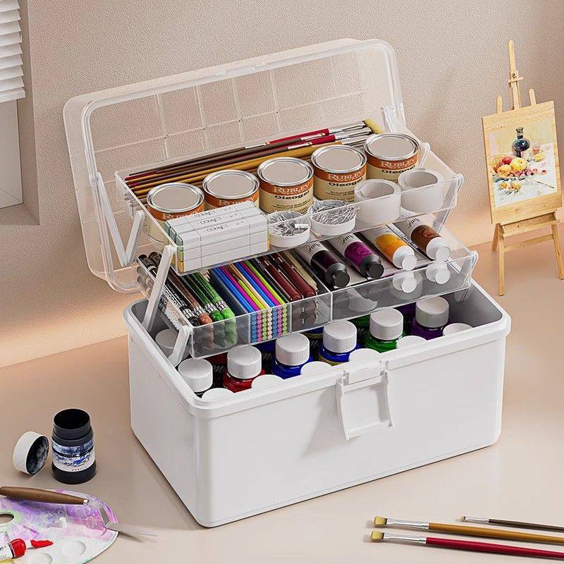 手提美术生工具箱国画画箱子美甲师专用多功能文具小学生收纳透明