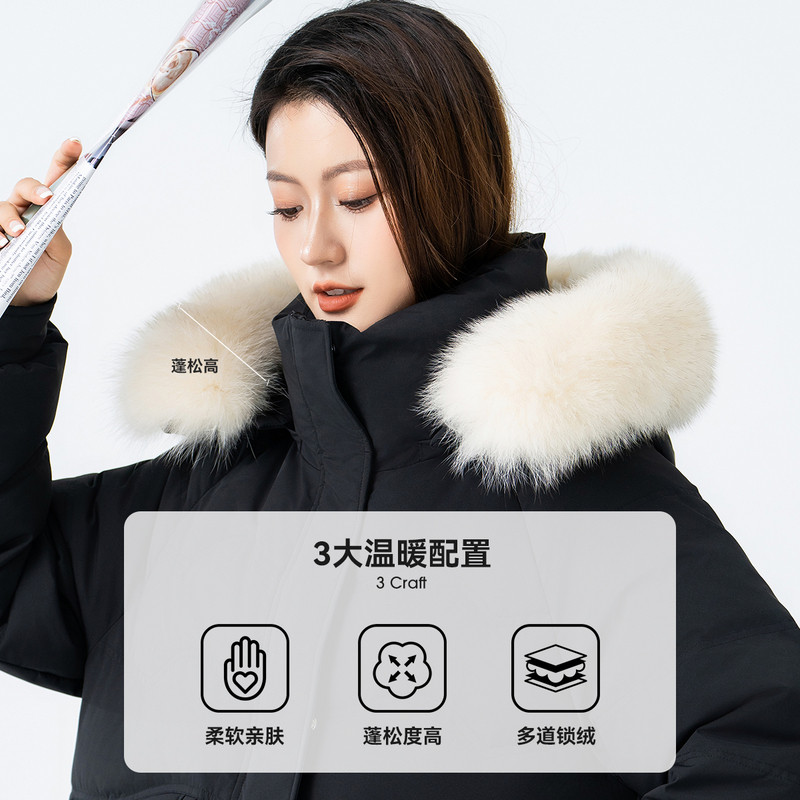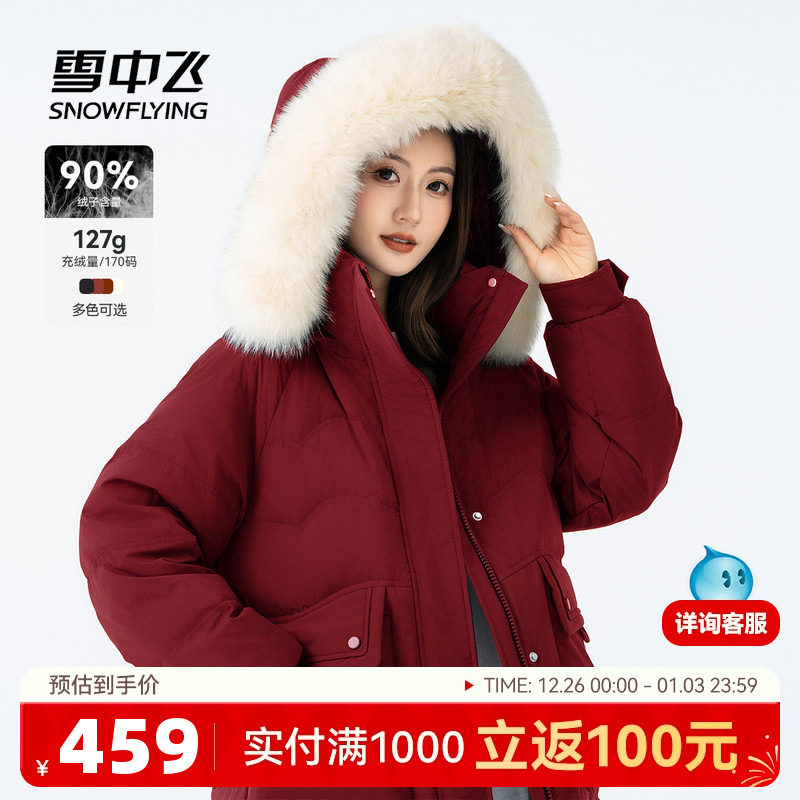 雪中飞2025冬新款女士中长狐狸毛领羽绒服温柔公主风保暖户外女