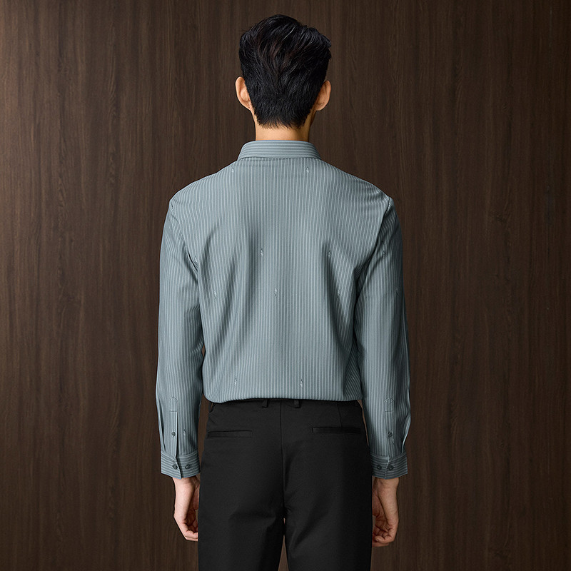 HLA/海澜之家轻商务时尚系列长袖衬衫25秋冬新加绒保暖条纹上衣男