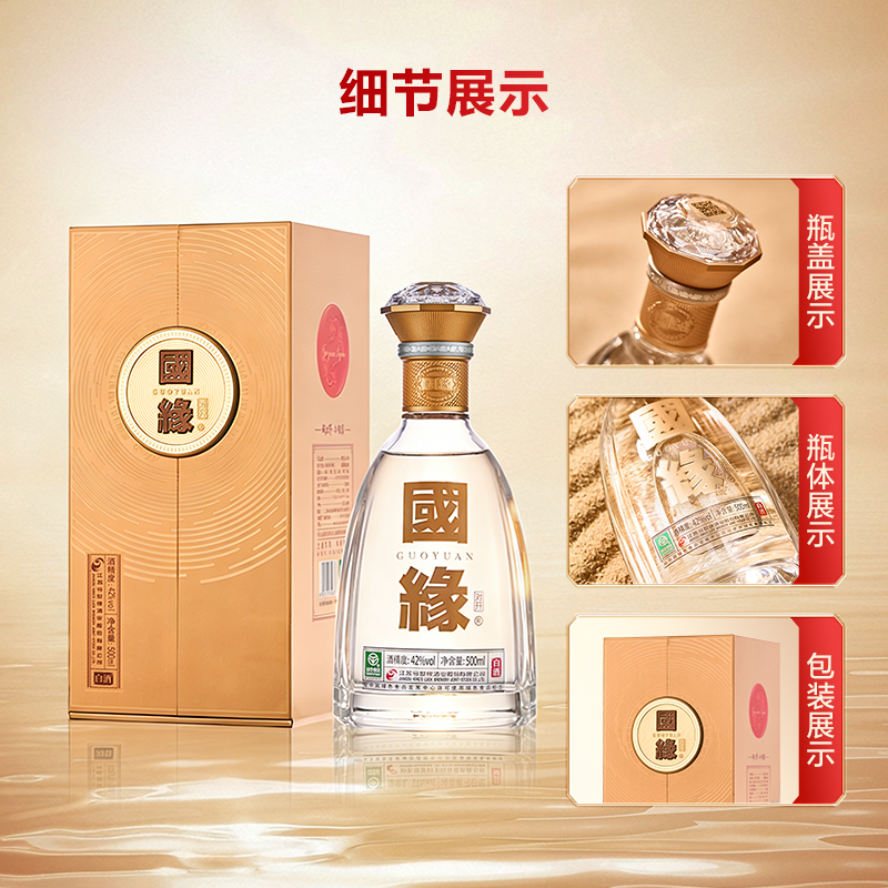 【酒厂自营】今世缘国缘对开42度500ml*6瓶整箱白酒商务节日送礼