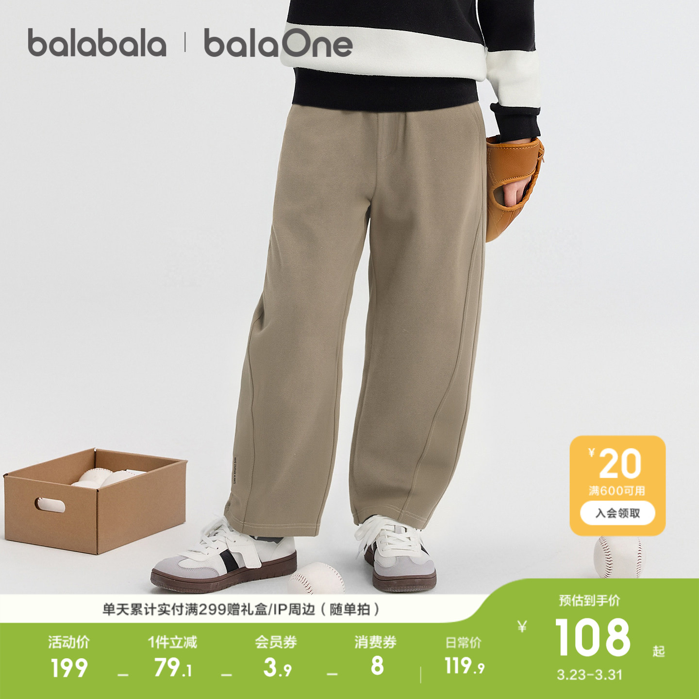 【balaOne】巴拉巴拉童装男童长裤儿童裤子2026休闲春装镰刀裤潮