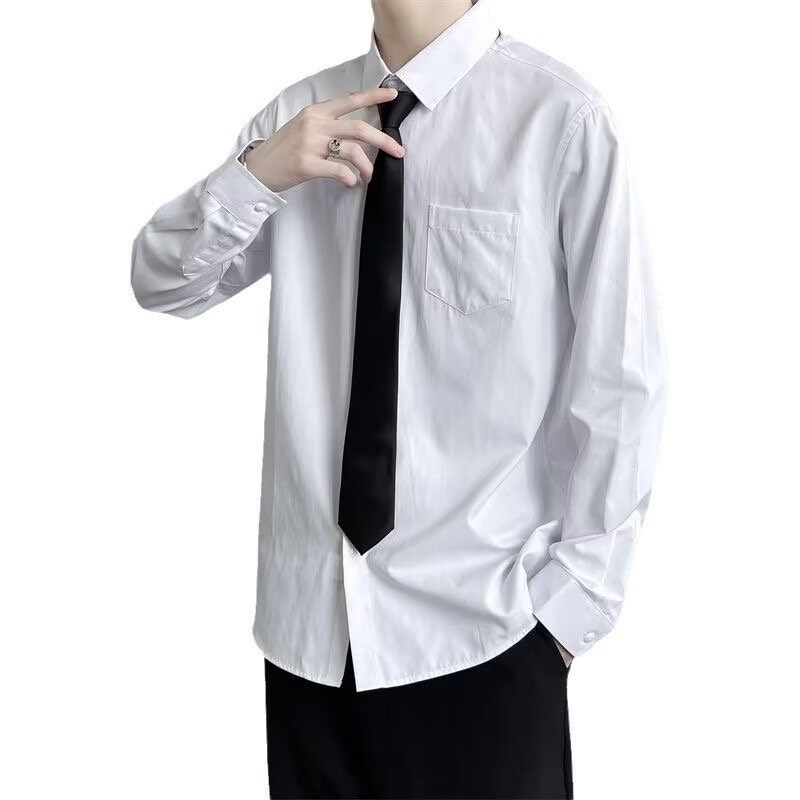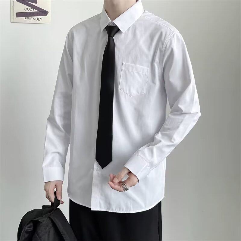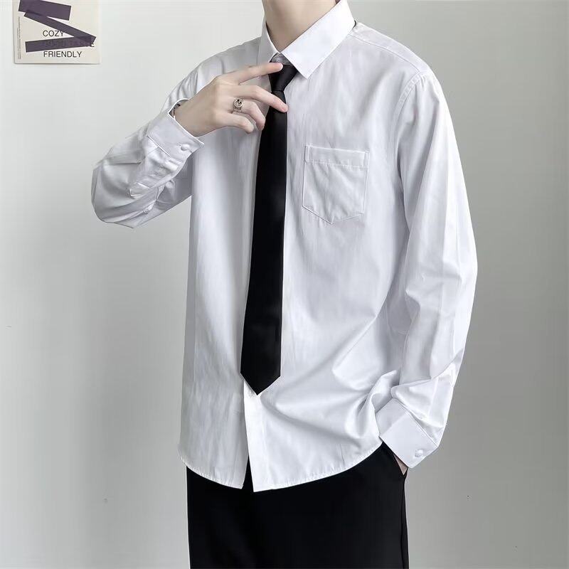 白色长袖衬衫男日系潮牌炸街潮流宽松纯色寸衫送领带情侣装dk制服
