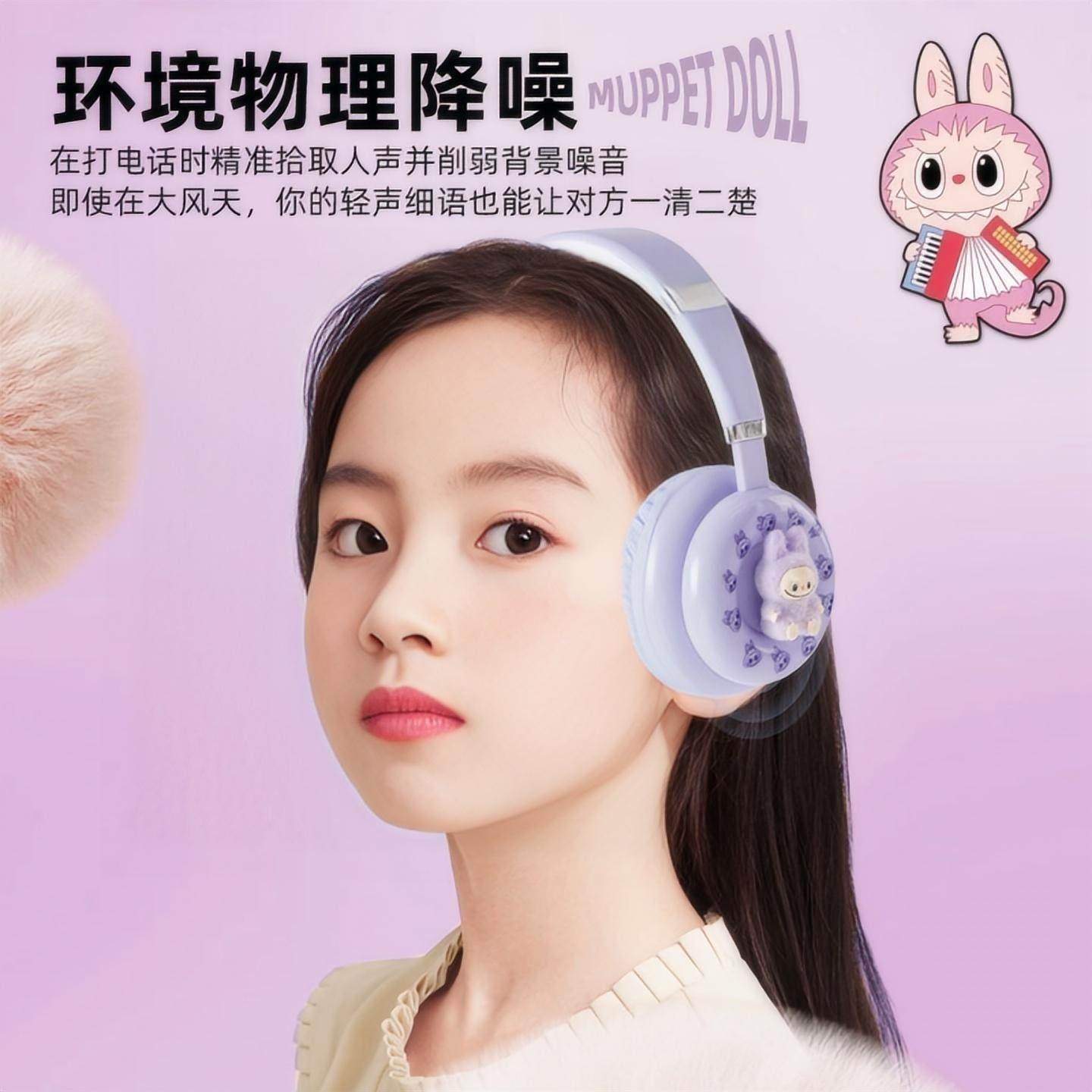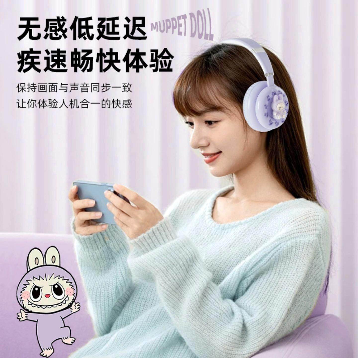 高颜值头戴式蓝牙耳机拉布布毛绒公仔卡通可爱学生长续航运动