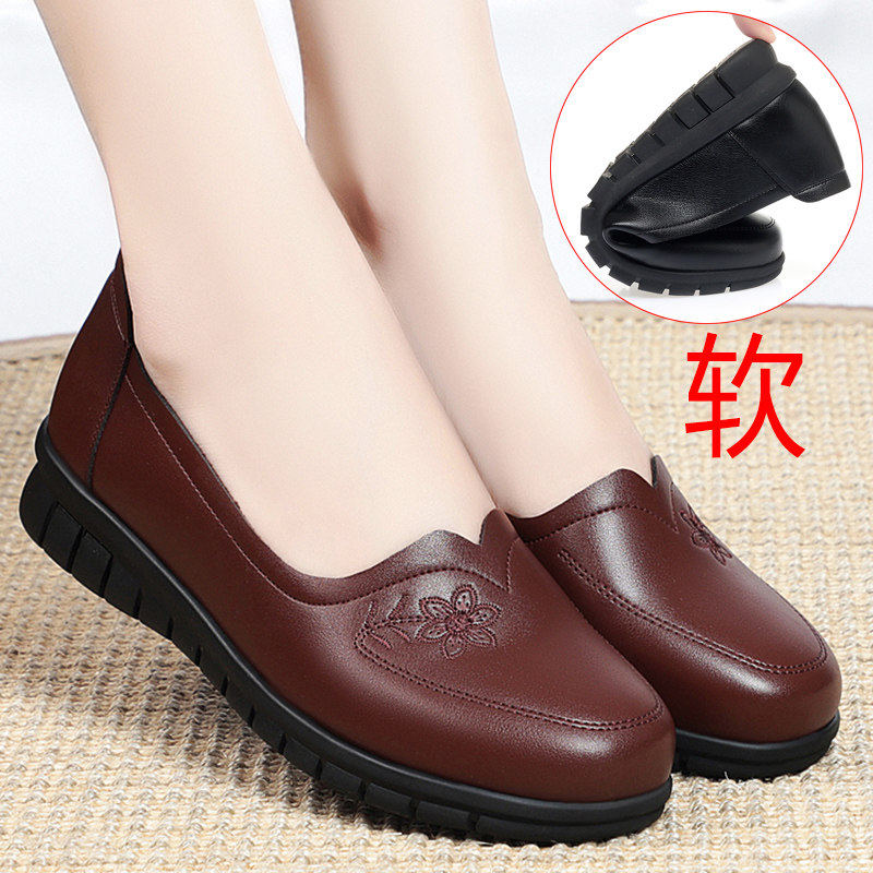 他她女孩软底一脚蹬中年妈妈鞋单鞋平底防滑老人中老年皮鞋女圆头