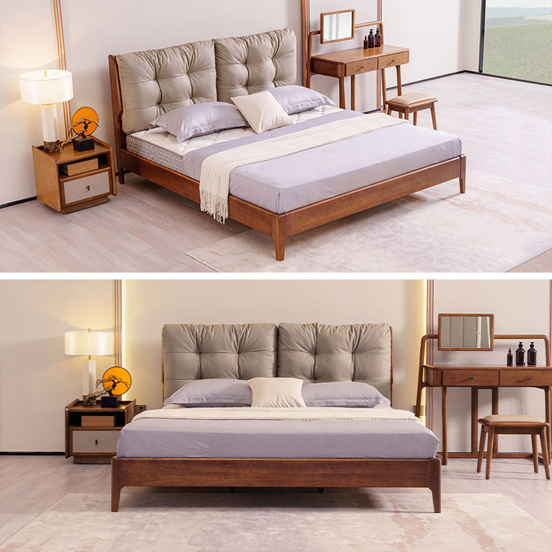 实木床现代简约胡桃木主卧1.5米双人床1.8米主卧轻奢婚房双人床