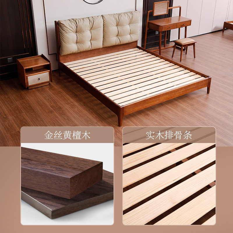 慕思官方旗舰店实木床金丝檀木大床互补干扰软包真皮床