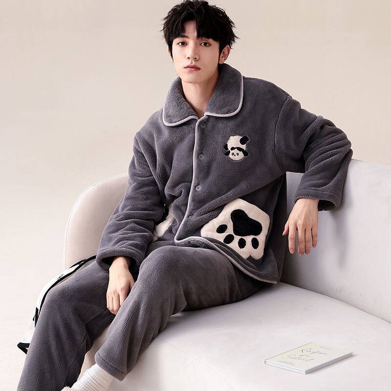 新款珊瑚绒睡衣男士秋冬款加厚套装加绒法兰绒男款冬季家居服大码