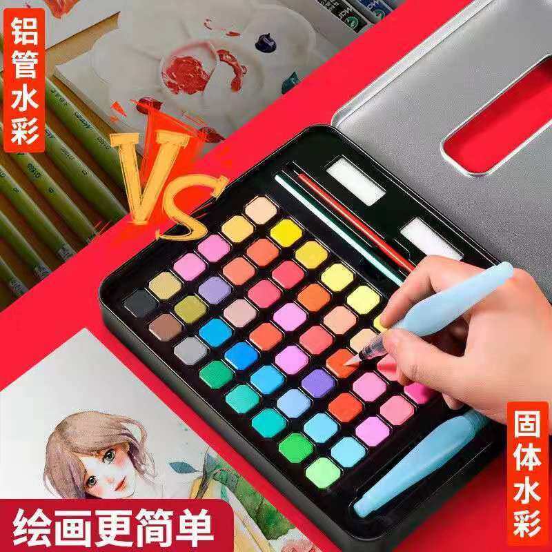 48色固体水彩颜料套装初学者美术手绘粉饼盒装便携式入门填画工具