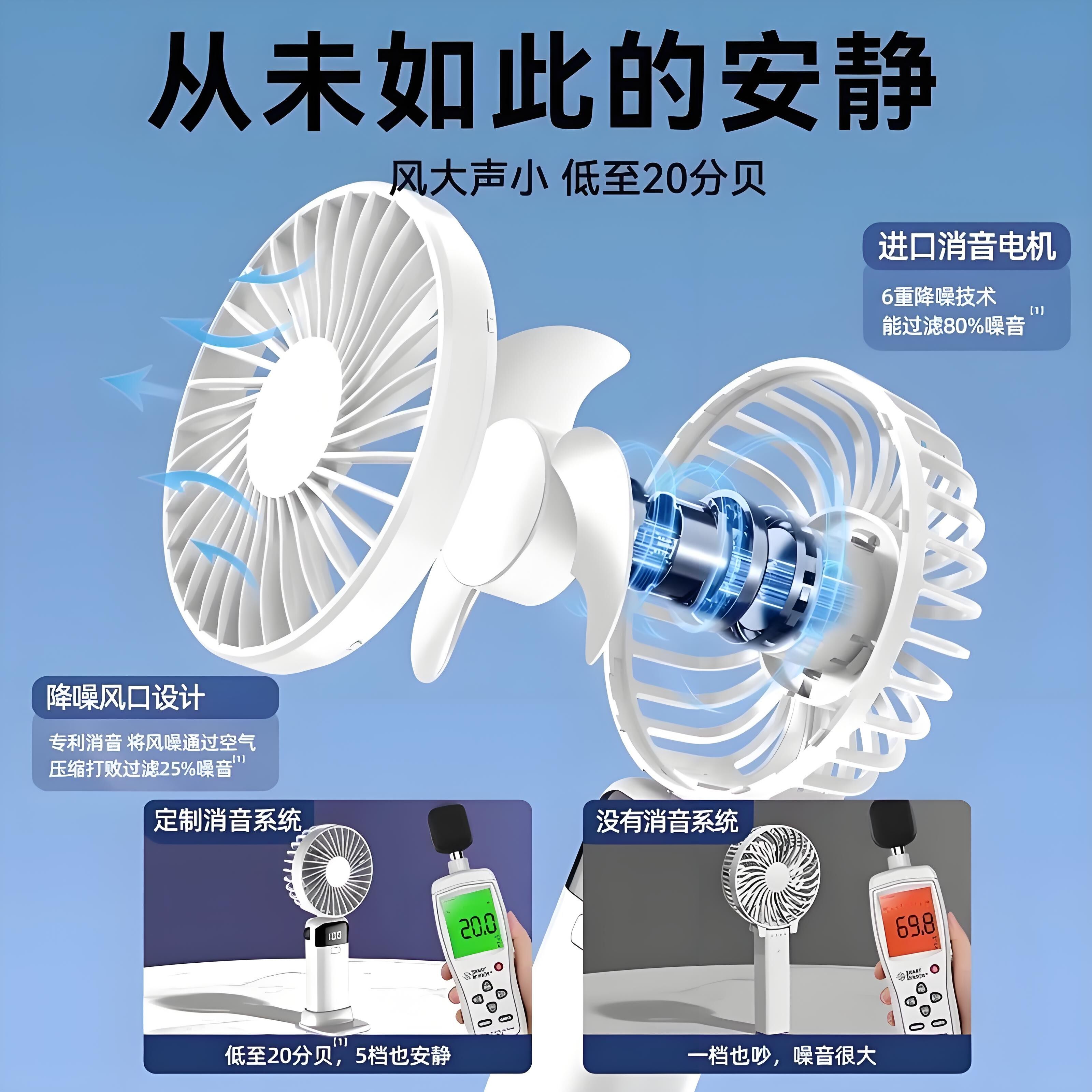 桌面小风扇超静音2025新款办公室桌上学生宿舍电风扇小型USB充电款迷你便携手持强力无声台式台扇长续航工位