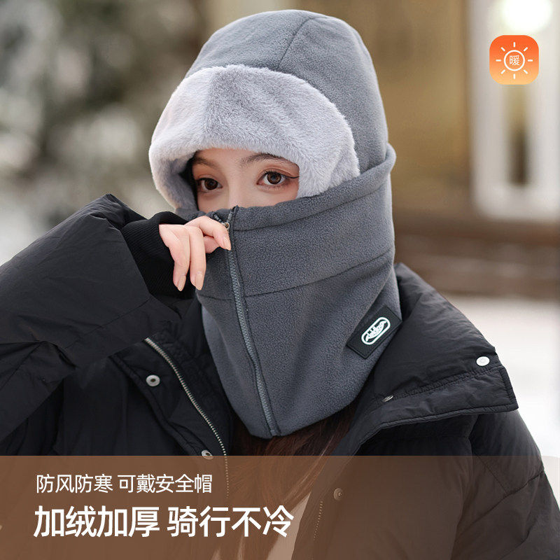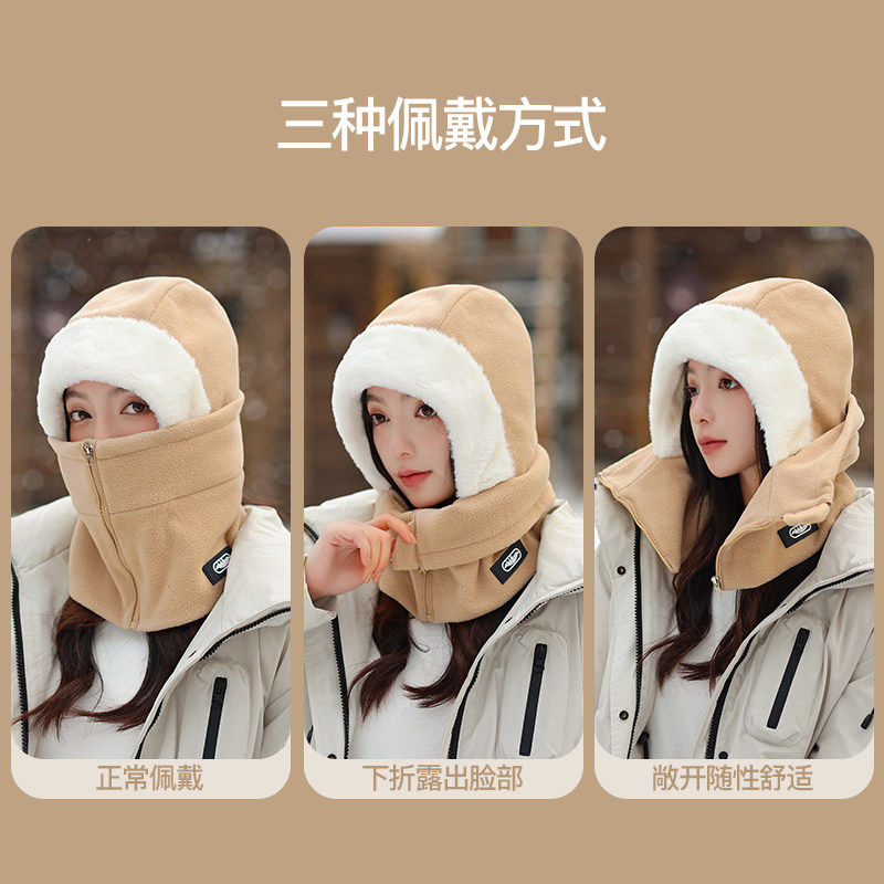 冬季保暖头套骑行电动车帽子围脖一体防风面罩女滑雪防寒护颈围巾